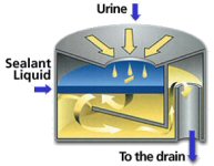 Barrier Fluid Waterless Urinal Systems Urine and debris passes through an oil-based barrier fluid which forms the seal to prevent odours reaching the washroom . In some systems, the barrier fluid is contained within a replaceable cartridge that also captures debris that would otherwise fall into the waste pipes. Cartridges typically need to be replaced every 2 to 6 months, dependent on usage. The barrier fluid can be swiftly degraded if the correct cleaning chemicals are not used. Otherwise, barrier systems work very well, although those that use replaceable cartridges can be expensive to run for busy washrooms. Barrier systems are used in several types of urinal bowls designed exclusively for waterless use, the most well known in the UK being Armitage Shanks Aridian and Falcon Waterfree. The latter models are quite popular in new builds. Another popular system is the Uridan, developed in Denmark, widely used across Europe and Australia, and increasingly popular in the UK. |